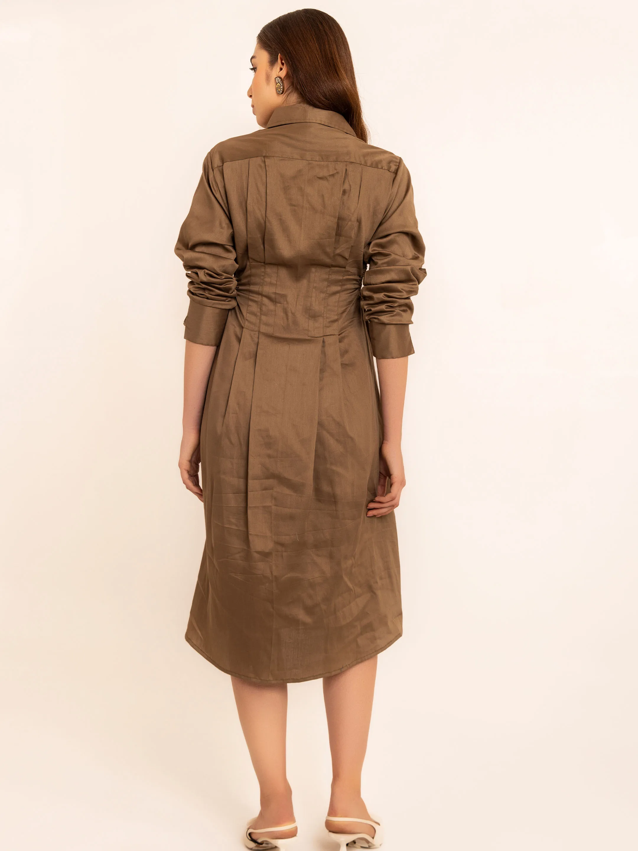Smoky Olive Shirt Midi Dress With Side Waist Cuts Women's Dress Set Summer for Women & Girl From Seller Available Big Size